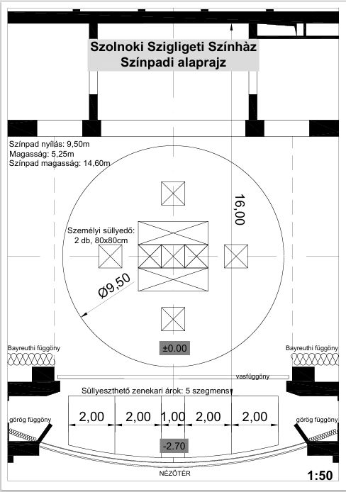 Műszaki alaprajz: Színműhely színpad alaprajz